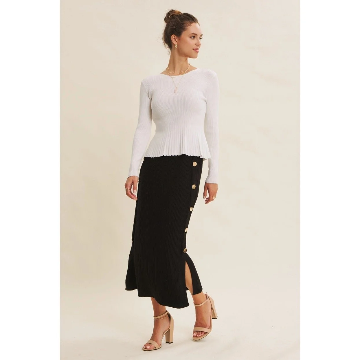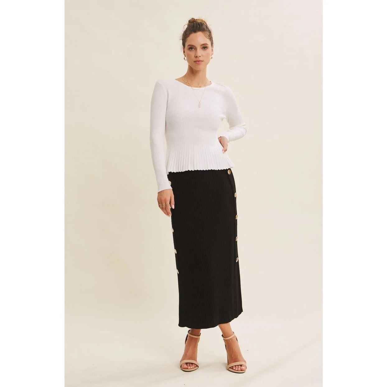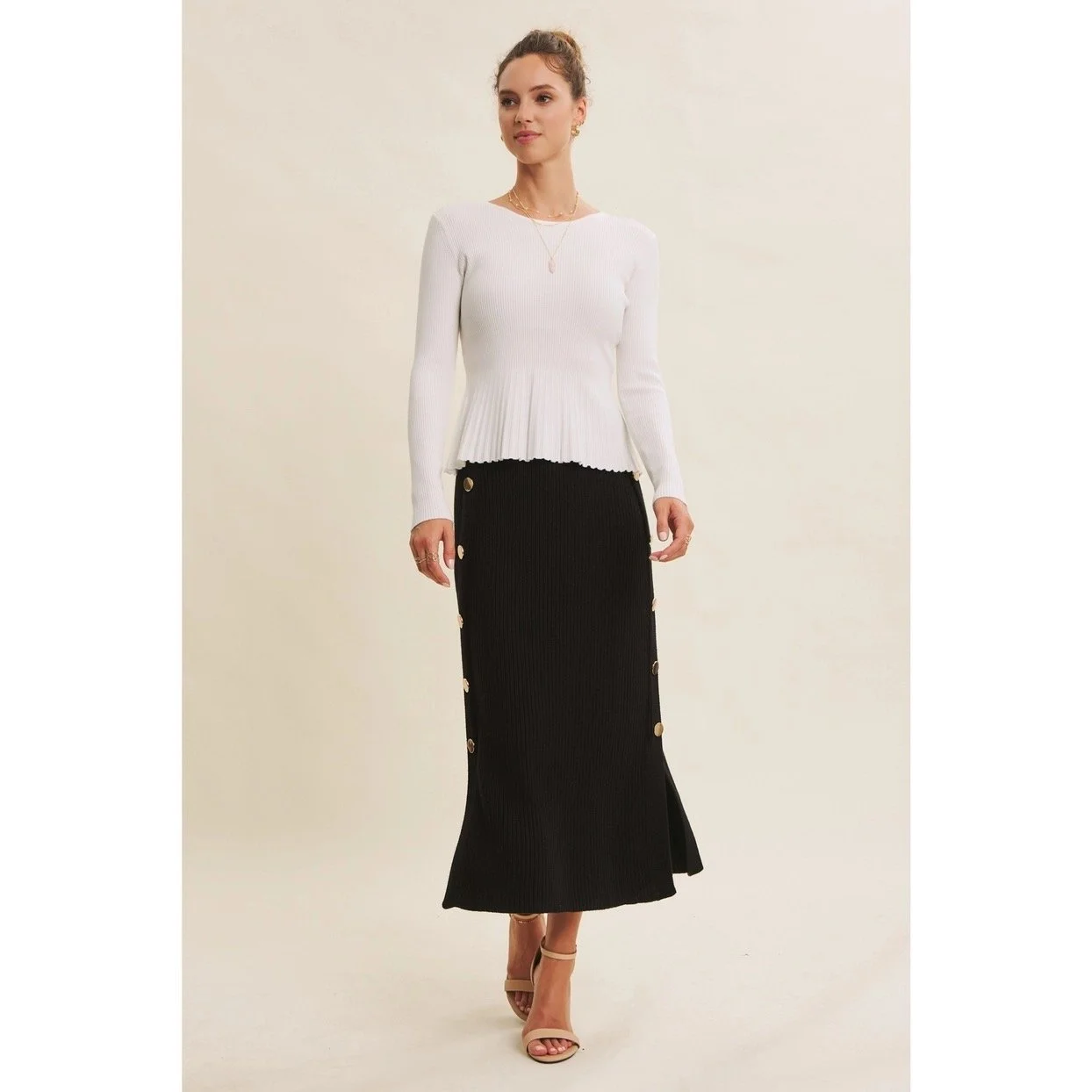 The Hettie skirt is the perfect skirt to dress up or down. Wear with with a blouse or sweater for a more polished look or with a tee and sneakers to keep it more casual. This satin maxi skirt features an elastic waistband, pleated fabrication and an ankle length lettuce hem. Available in S-L